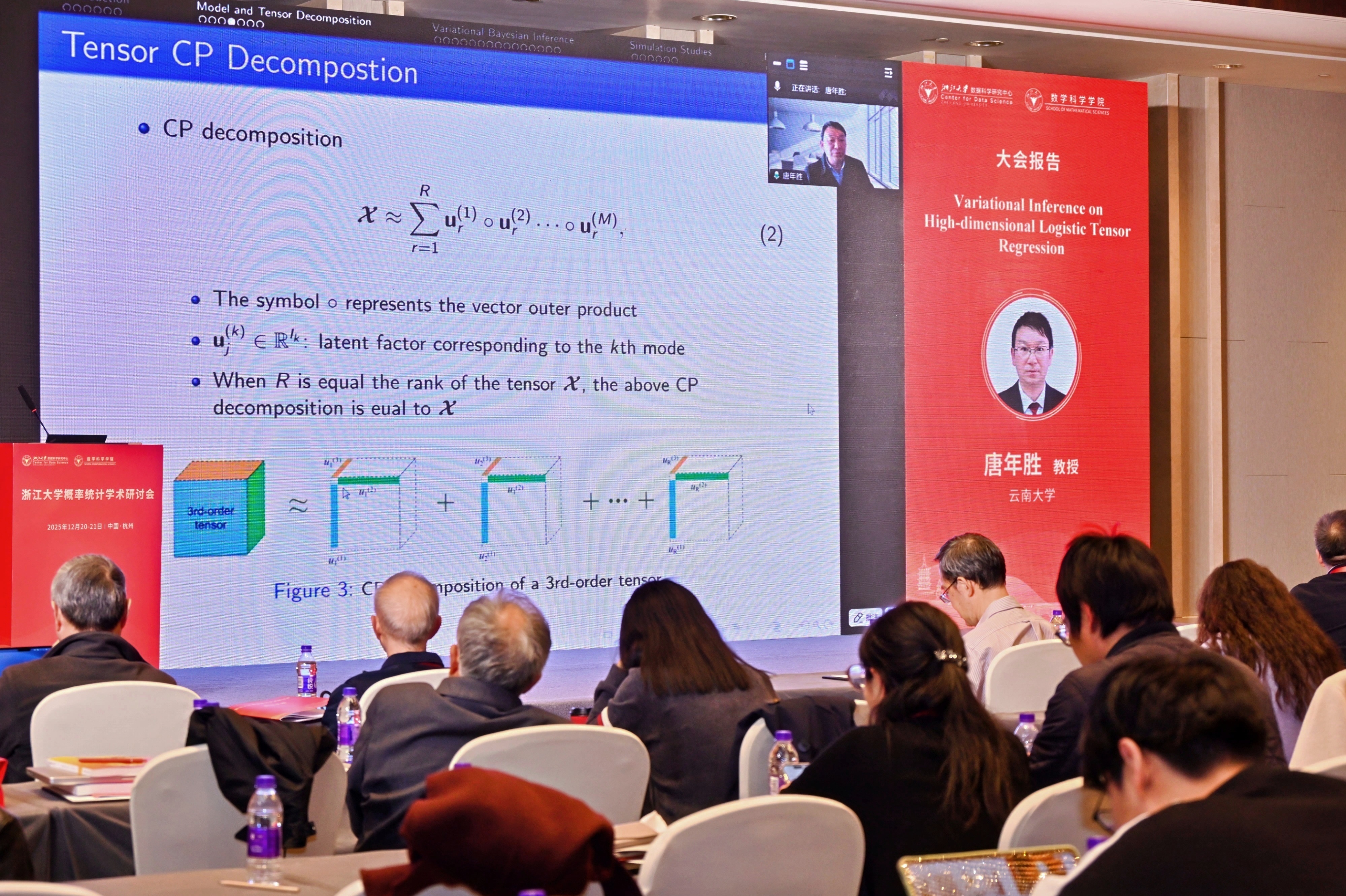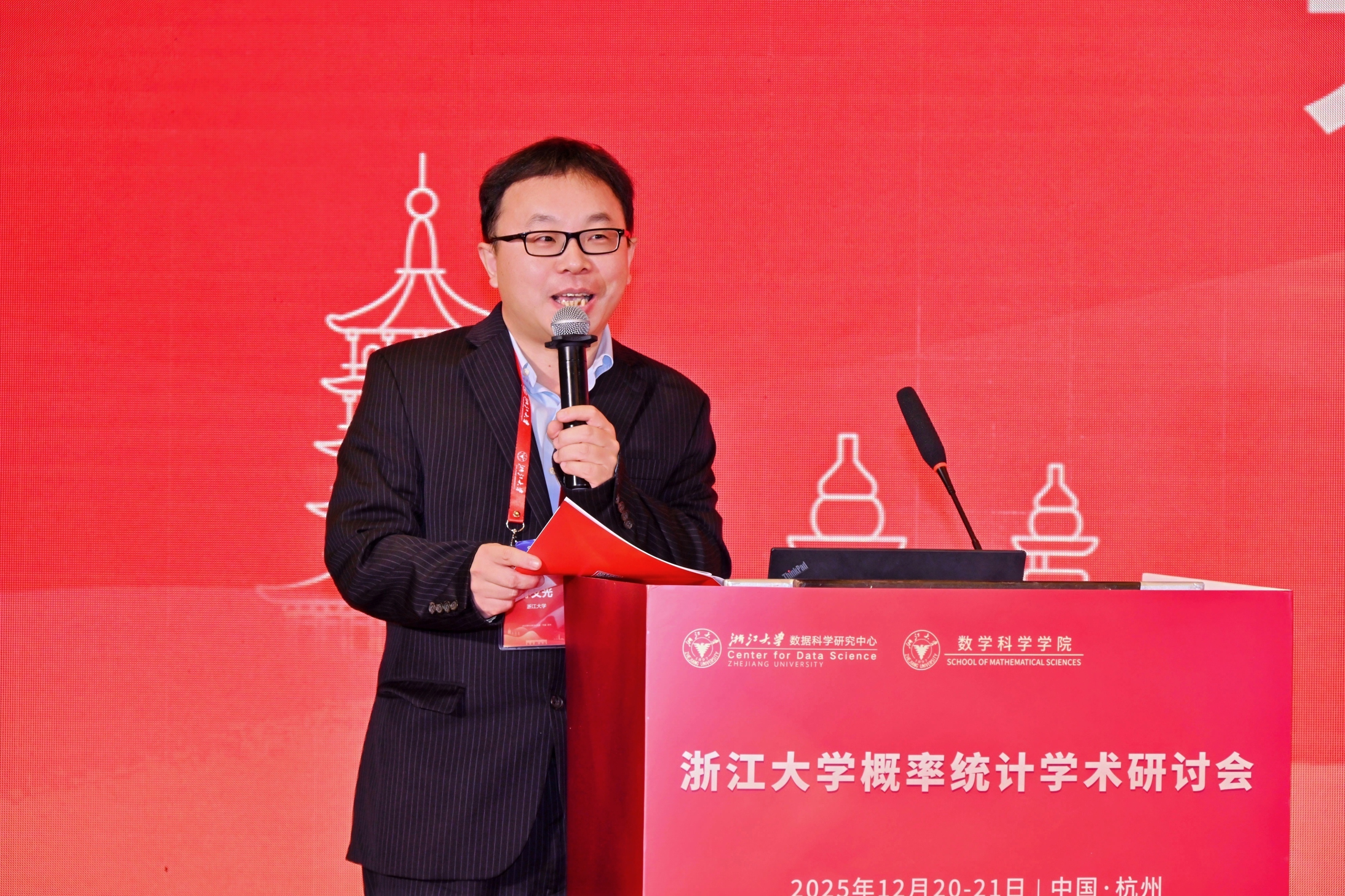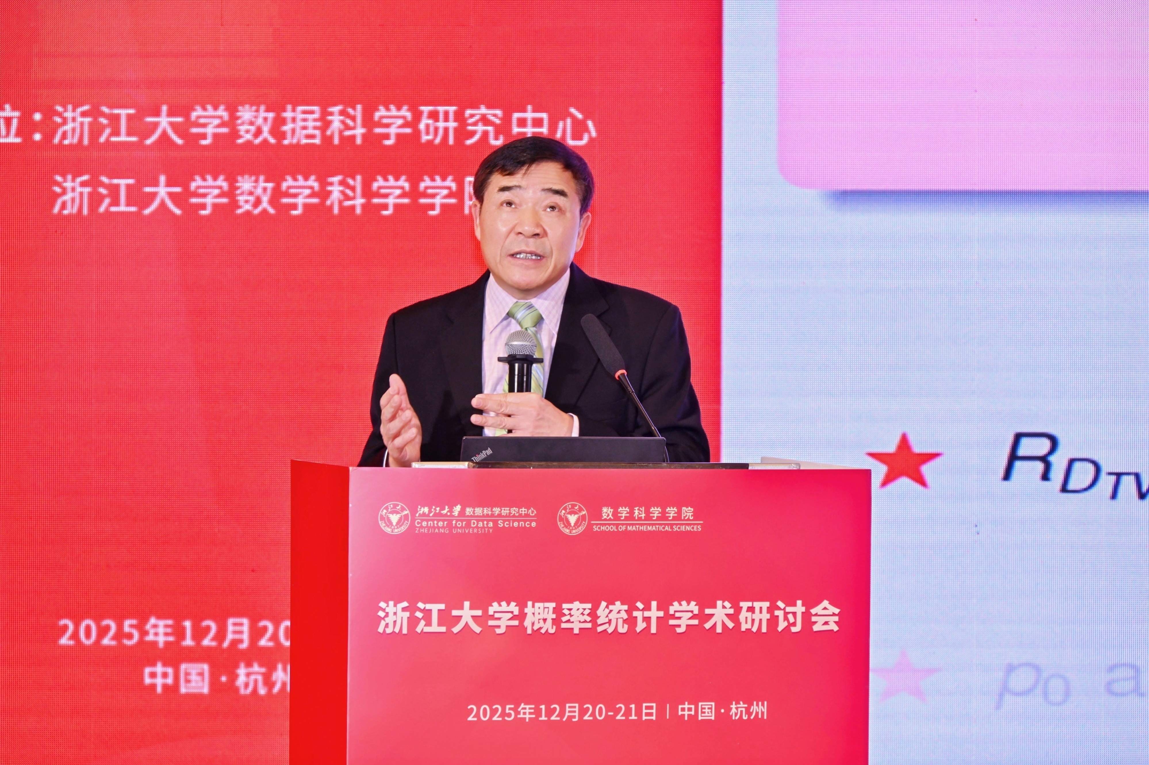20251220日至21日,由浙江大学数据科学研究中心与浙江大学数学科学学院联合主办的浙江大学概率统计学术研讨会在杭州西溪宾馆成功举办。会议汇聚了百余位海内外概率统计领域的顶尖学者与师生校友,围绕概率统计学科的前沿理论、方法创新与交叉应用展开深入研讨,共同呈现了一场融汇学术传承与开拓创新的思想盛宴。