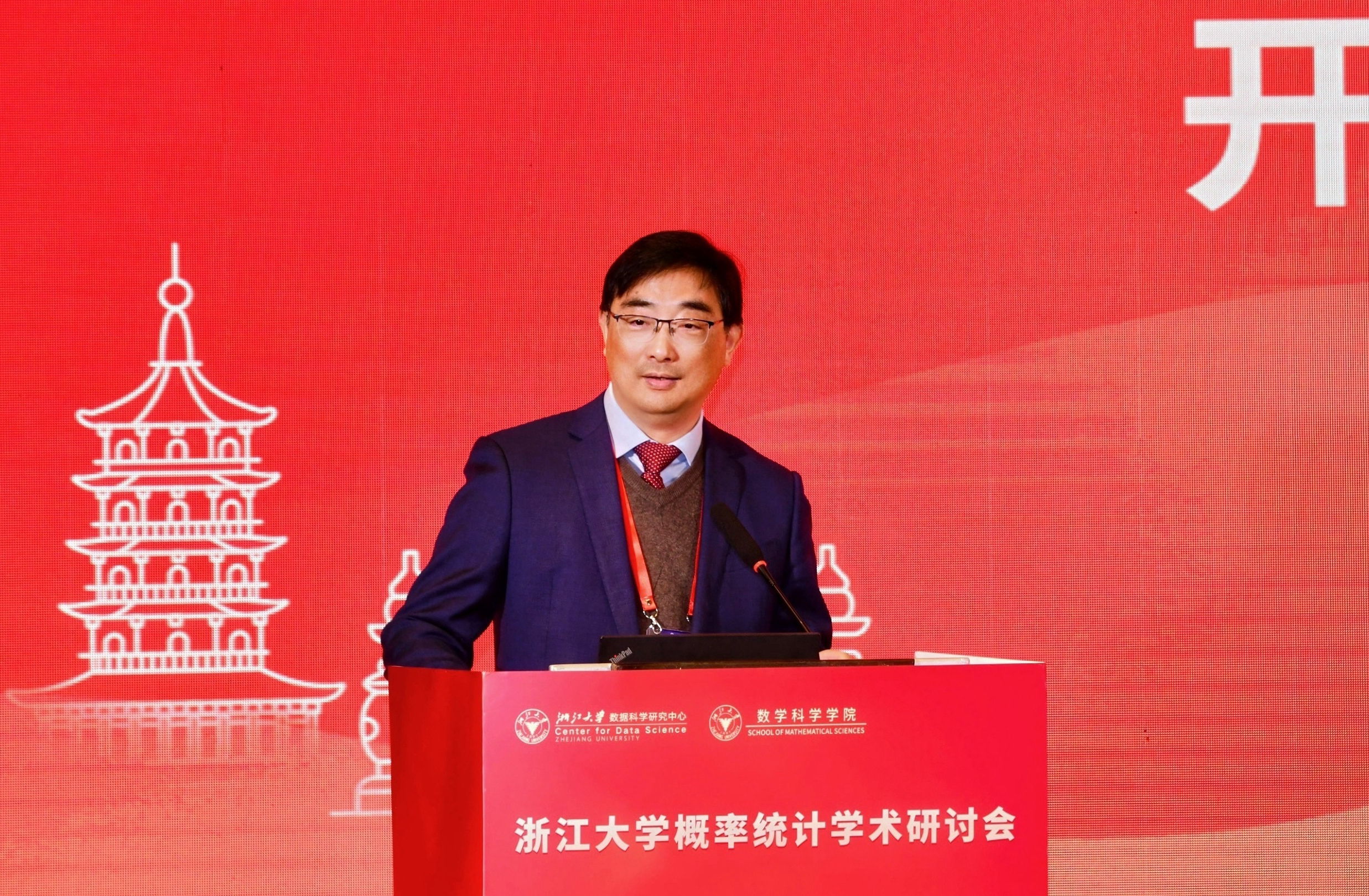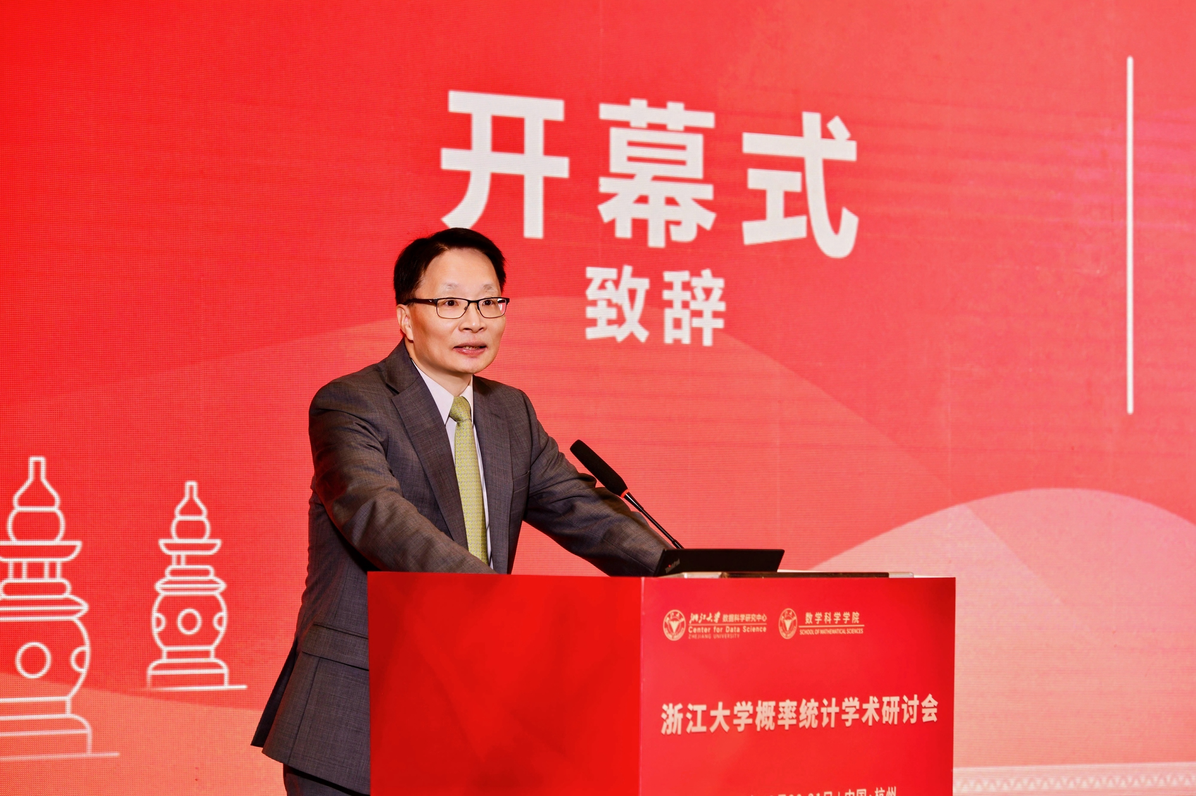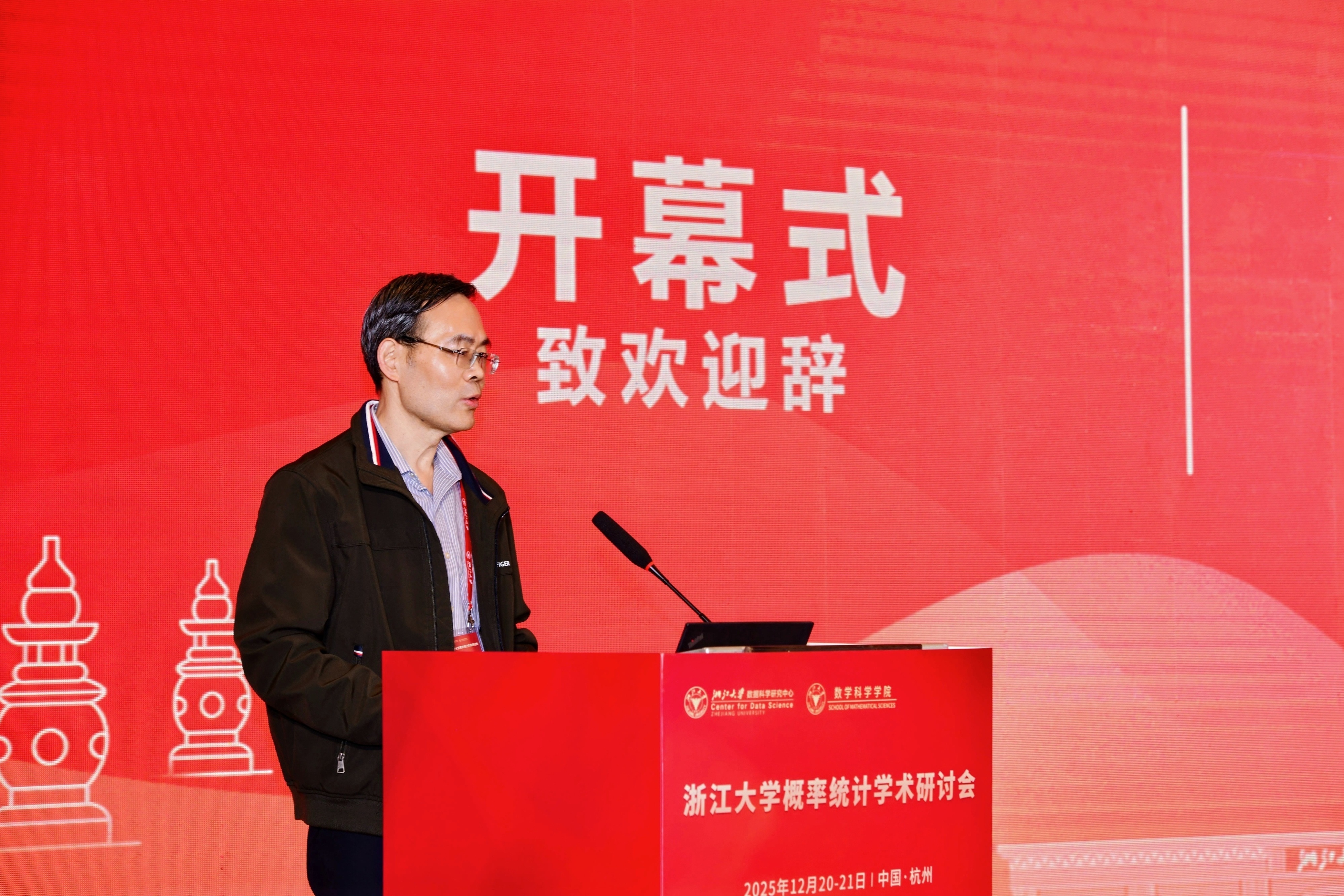 浙江大学数学科学学院党委书记陈庆老师代表学院向与会嘉宾表示热烈欢迎,并介绍了学院近年来取得的显著进展。他表示,学院将继续支持概率统计学科的进一步发展与交叉融合,助力其在国家重大需求和国际学术前沿中发挥更大作用。