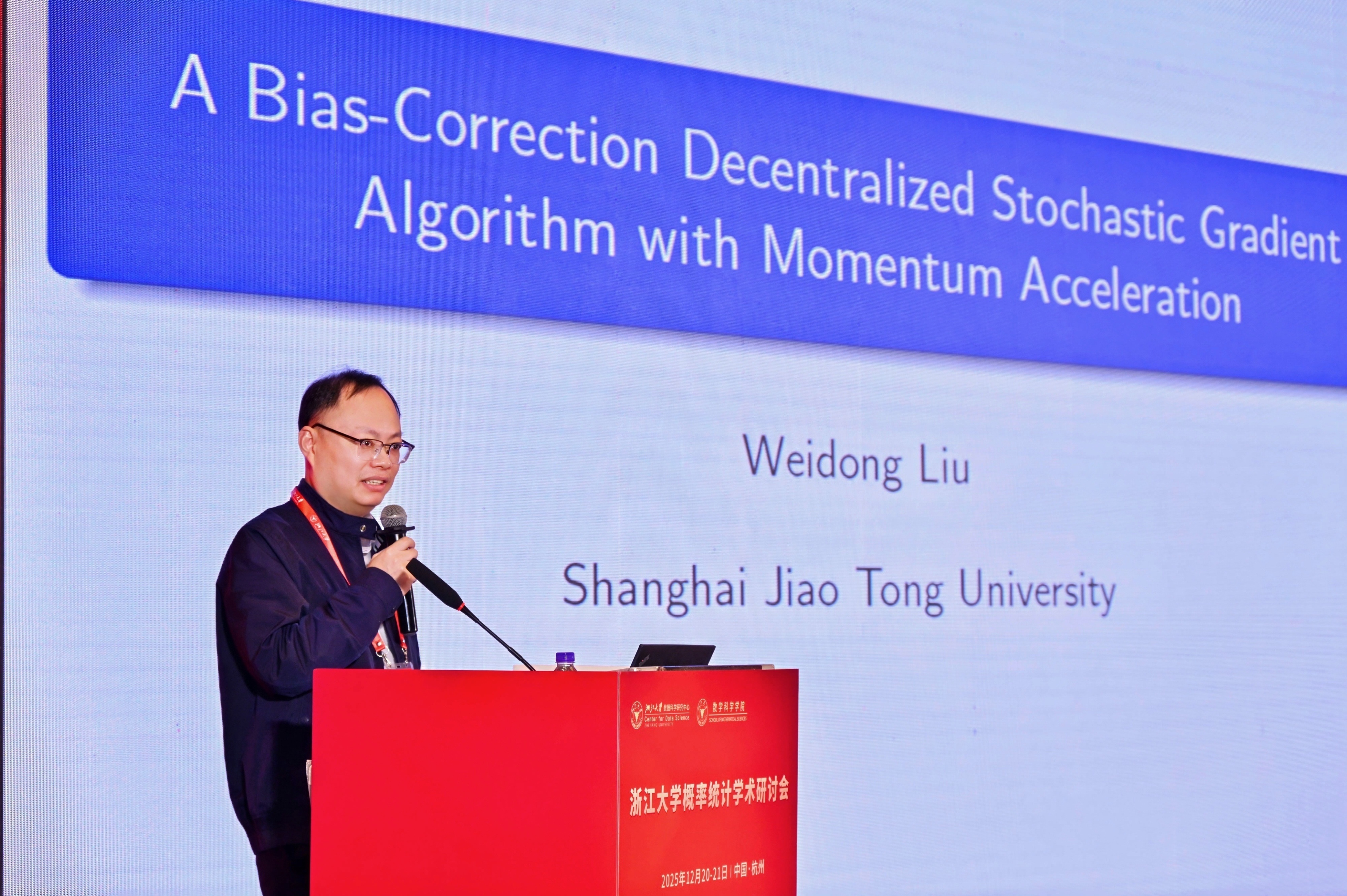 随后,大会组委会主席、南方科技大学邵启满教授致欢迎辞。他回顾了概率统计学科的发展历程,指出在大数据与人工智能蓬勃发展的今天,学科正迎来新的机遇与挑战。他希望通过此次会议搭建高水平交流平台,促进学术碰撞与青年人才培养。
